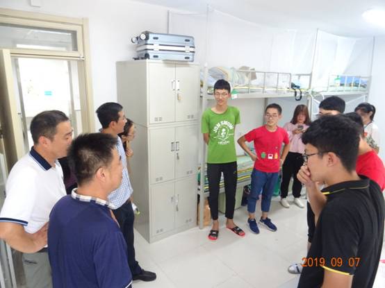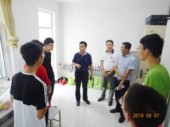 9月7日下午,yl23455永利官网238名19级新生已经全部入学报到。为进一步掌握新生入住宿舍的具体情况,让新生感受到院领导、老师们对他们的关心与关怀,学院书记赵连章,院长张晓东在学院相关职能部门老师的陪同下深入学生宿舍,走访了部分2019级新生及家长。