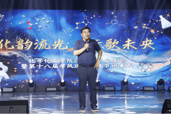 校友代表表达了对母校培养的由衷感谢,结合自身奋斗历程,深情寄语新聘任联络员和在场学子,青春是不可逆转的化学反应,希望学弟学妹们在未来的学习和工作中,不断“合成”新的知识与能力,“提纯”自己的品德与格局,同时积极“聚合”分散的校友资源,为学院发展注入青大的“分子间作用力”。