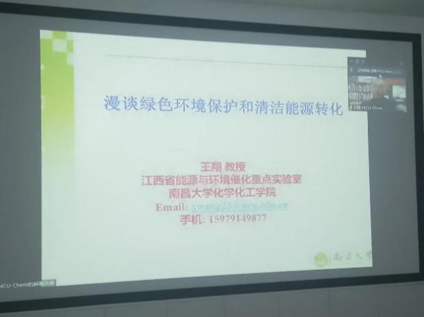 当今化学学科面临的问题和挑战是:一、石油、煤炭等石化资源逐渐枯竭,人类需要寻找新的绿色可再生能源;二、大气污染日益严重,发展绿色催化过程以消除大气污染,保护人类生存环境和生态环境是重要的命题;三、历史上的很多高污染化学化工过程必须重新设计绿色催化剂和流程,以达到从源头制止污染的目的。王翔教授以“漫谈绿色环境保护和清洁能源转化”为题,详细介绍绿色化学的发展历史,并通过一些特殊的化工生产和应用案例,讲解当今在绿色环境保护和清洁能源转化领域的一些热点和前沿问题,引起广大师生研究的兴趣。