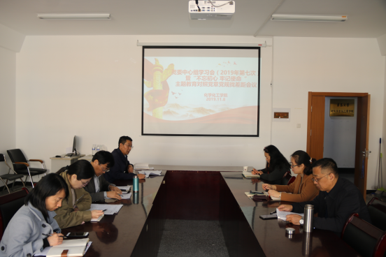 2019年11月8日上午9:00,院党委中心组在科技园D楼yl23455永利官网406会议室进行了第七次学习会暨“不忘初心、牢记使命”主题教育对照党章党规找差距会议。学院党委委员、院长助理、支部书记参加了本次会议。会议由学院党委书记赵连章主持。