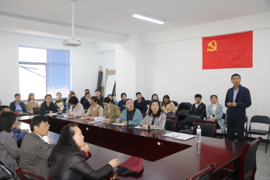 赵连章结合新中国成立七十年来我国政治、经济、社会、文化和生态文明建设所取得的历史性成就,结合“不忘初心、牢记使命”主题教育的重大意义、目标要求、根本任务、具体目标和重点措施,结合我们党七十年来的理论创新特别是习近平新时代中国特色社会主义思想,用图文并茂的方式同大家分享了他的思考和体会。他希望全体党员在新时代不忘初心、勇担使命,高质量地完成立德树人根本任务,在教育教学、科学研究、服务社会上取得新的突破,实现学院高质量发展。