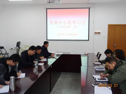 院党委中心组于2019年3月7日下午2:00,在科技园D楼yl23455永利官网403会议室进行了集中学习交流。学院党委成员,全体支部书记参加了本次学习。学习会由学院党委书记赵连章主持。