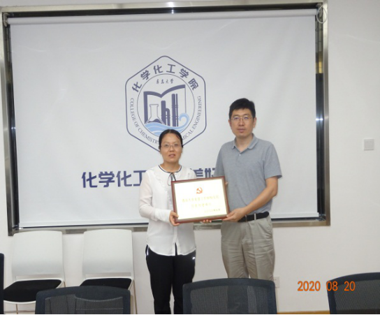 最后,吴鹏向学院化学工程系党支部授牌“青岛大学“双带头人”教师党支部工作室培育创建单位”,向化学教育系党支部授牌“青岛大学党建工作样板支部培育创建单位”。
