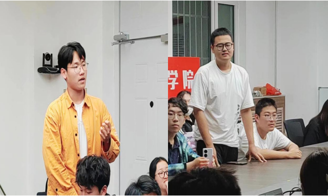 在“青春领航 榜样引领”交流分享会环节,学院优秀学生代表王玖一、王炳仪、刘阳、聂俊硕依次进行成长交流和经验分享。