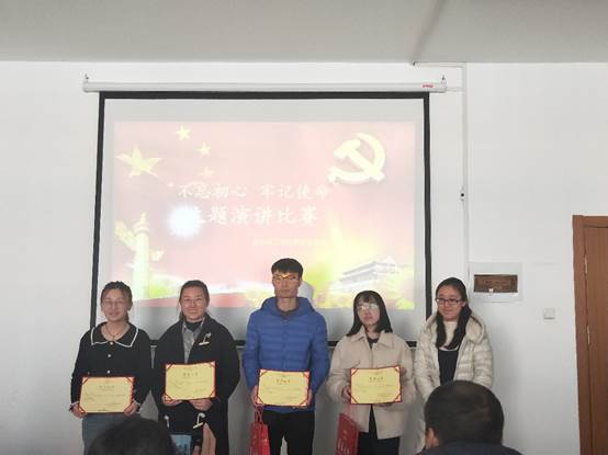 青岛大学“不忘初心、牢记使命”主题教育即将接近尾声。根据学校实施方案,结合学院实际,为切实发挥学生党员的思想引领和行为示范作用,进一步激发广大学子的积极性、主动性、创造性,坚定理想信念,践行初心意识,推进“不忘初心、牢记使命”主题教育,2019年12月03日中午,yl23455永利官网院三个学生党支部在青岛大学科技园D406会议室联合举办了“不忘初心、牢记使命”主题演讲比赛。本次比赛共有9名选手参赛,分别是各学生党支部推荐的优秀代表。比赛由学生第一党支部书记董永红老师、学生第二党支部书记付刚帮老师、学生第三党支部书记史氾平老师、应化系党支部朱倩倩老师、化学系党支部王荟琪老师担任评委。