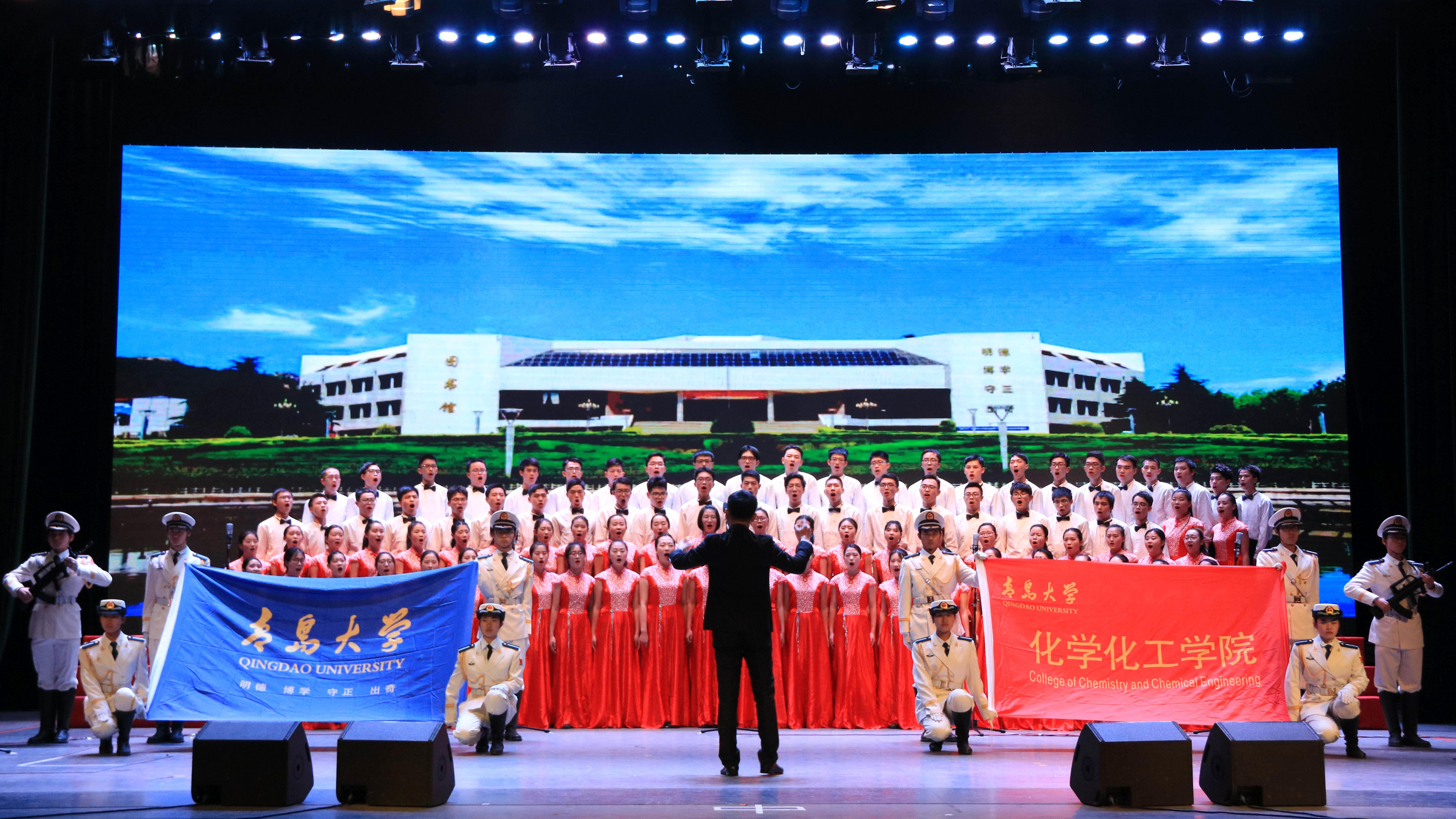学院参赛曲目是必选歌曲《青大之歌》和自选曲目《黄水谣》。通过近两个半月准备、排练,合唱队员在训练中表现出极大的坚持与热情。比赛中,一张张朝气蓬勃的面孔,激情嘹亮的歌声震撼了在场观众。《青大之歌》演唱时,八名国旗班队员分别持青岛大学校旗和yl23455永利官网院旗,迈着整齐划一的步伐登场,将全场气氛推向高潮,掌声和喝彩声交相辉映。脍炙人口的经典歌曲《黄水谣》被演绎得淋漓尽致,时而低沉,时而高亢,不仅点燃了同学们的爱国热情,增强了责任感和使命感,更激励同学们把良好的革命品质和创新精神带到日常的学习和生活中去。