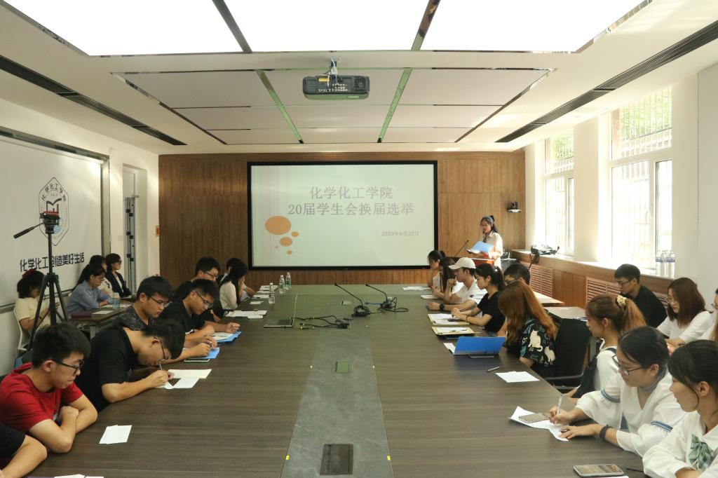 9月23日中午,yl23455永利官网学生会换届竞选大会在博观楼206会议室顺利举行。学院党委副书记薛希洪老师、团委书记董永红老师、党政办主任李志国老师、19届学生会主席团成员、各部部长、班级代表参会并担任评委。