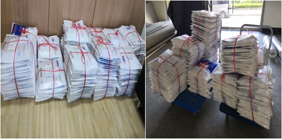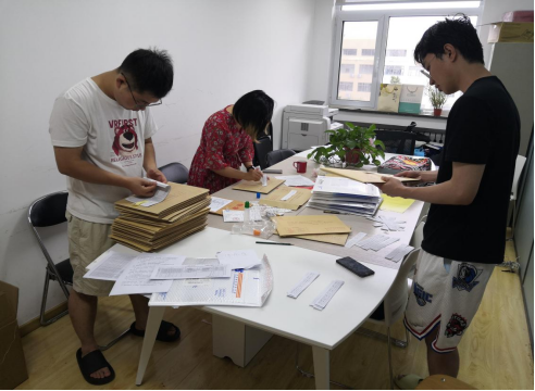 档案整理封装后,志愿者们进行分类整理排序,并将档案装入统一封套中,塑封、贴密封条、贴快递单、运送、交接邮寄等,各个环节层层相扣、衔接有序地逐一进行,顺利完成了学院300余名毕业生学子的档案整理发送工作。