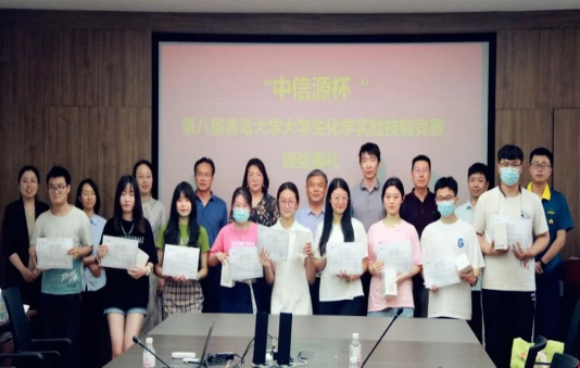 为提高大学生学习实验和从事实验研究的兴趣,引导学生崇尚科学、追求真知、锐意创新、勇于实践,营造积极向上的学习氛围,第八届“中信源杯”青岛大学大学生化学实验技能竞赛于2022年5月13日至15日举办。今年竞赛包含实验理论考试、虚拟仿真线上考试和实验操作技能测试三个部分,通过初赛和复赛的层层筛选,60名同学获得了本次竞赛的一、二、三等奖。